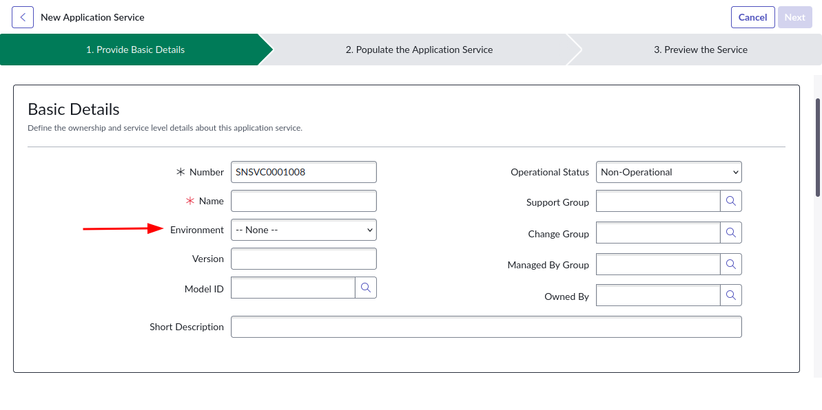 This is further reinforced by by the Service Builder, which wants you to use the "Environment" field.
