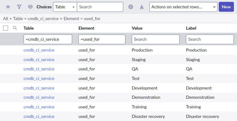 - The used_for label is quite possibly the worst label in all of ServiceNow CMDB. The industry refers to this data as "Environment". Due to the poor name, many customers didn't know this attribute existed. The #1 custom created attribute in ServiceNow CMDB is "Environment".